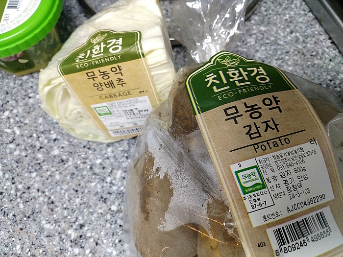 그냥 냉장고에 있는 남은 야채 신선한 무농약 감자와 양배추
